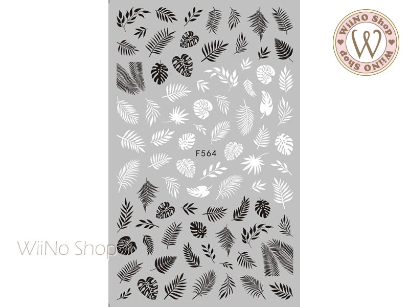 Black & White Leaves Adhesive Nail Art Sticker - 1 pc (F564)