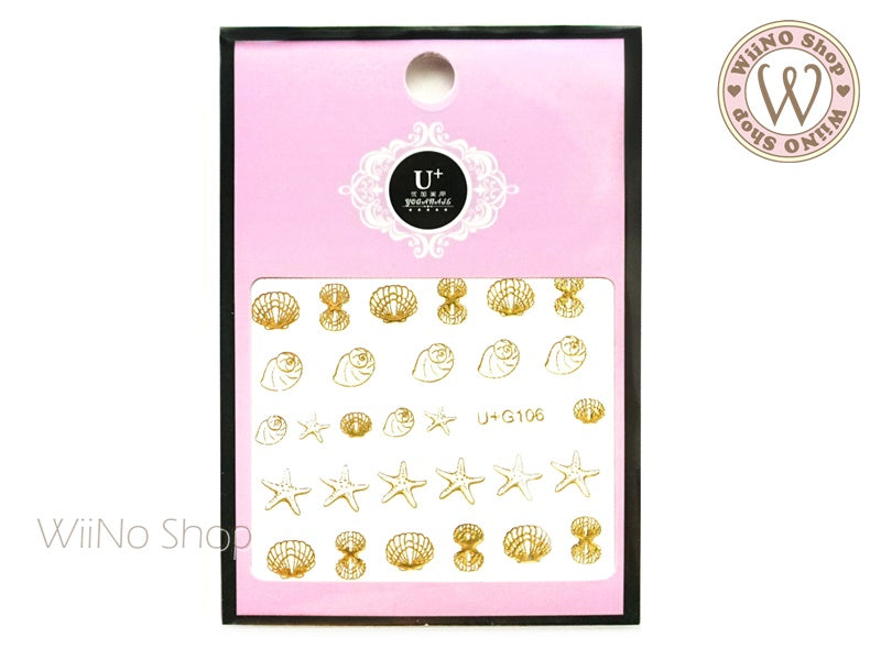 Gold Seashell Starfish Adhesive Nail Art Sticker - 1 pc (U+G106)