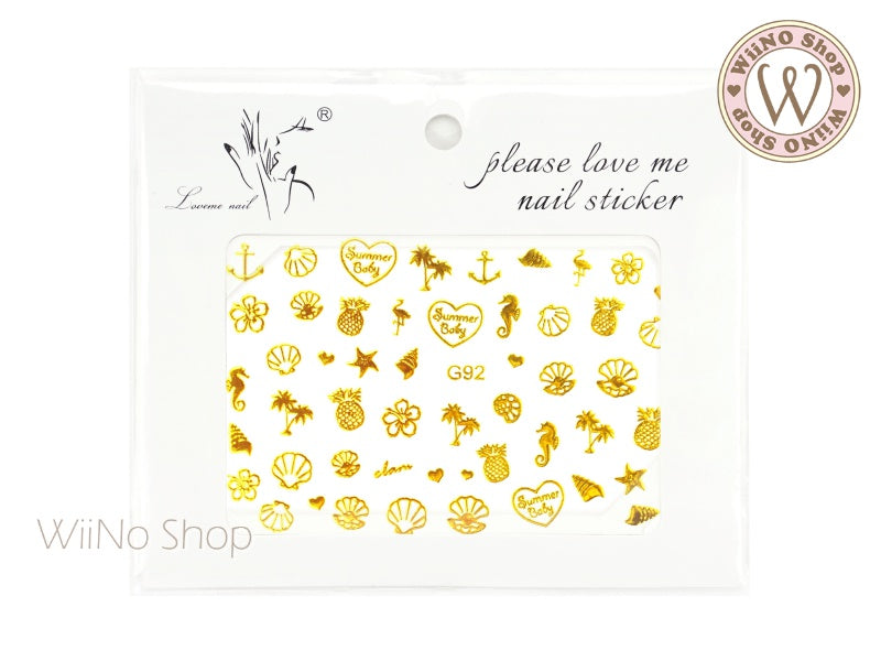 Gold Summer Time Adhesive Nail Art Sticker - 1 pc (G-92)