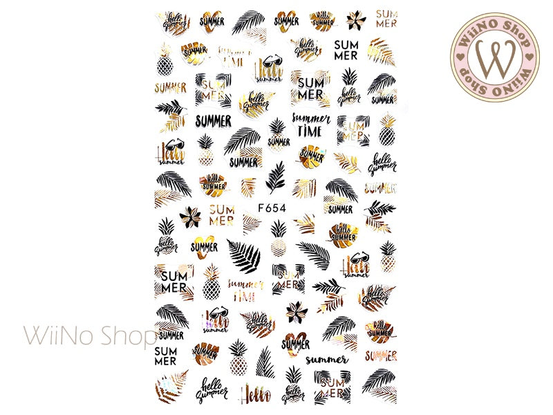 Hello Summer Black Gold Holographic Adhesive Nail Art Sticker - 1 pc (F654-BGH)