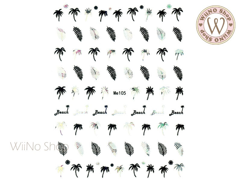 Palm Tree & Leaves Silver Holographic Adhesive Nail Art Sticker - 1 pc (Me105-BSH)