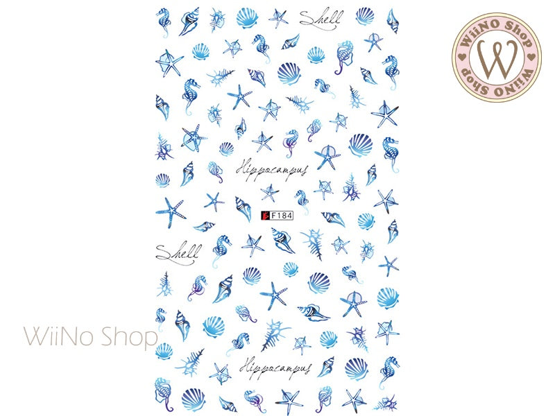 Blue Shell Starfish Adhesive Nail Art Sticker - 1 pc (F184)
