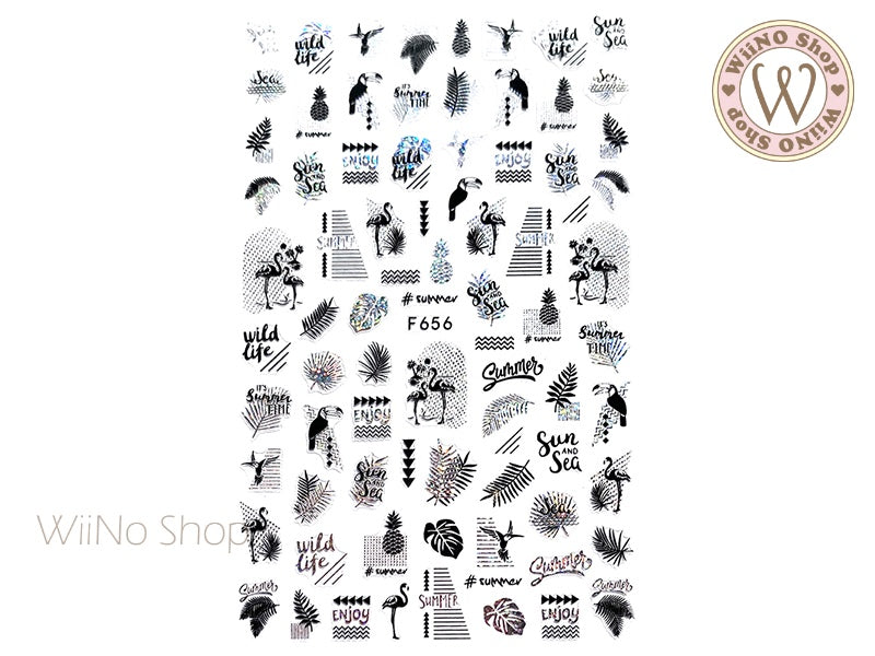 Tropical Summer Black Silver Holographic Adhesive Nail Art Sticker - 1 pc (F656-BSH)