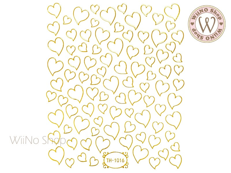 Gold Lopsided Heart Frame Adhesive Nail Art Sticker - 1 pc (TH-1016)