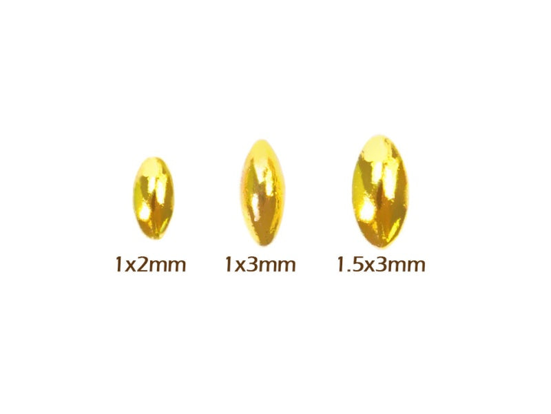 Gold Mini Marquise Metal Studs - 25 pcs (1x2mm/1x3mm/1.5x3mm)