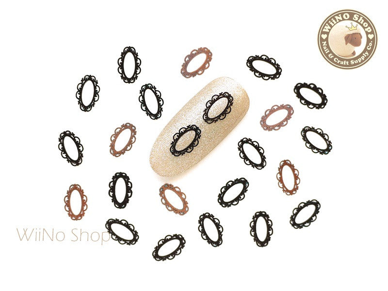 Black Oval Lace Frame Ultra Thin Nail Art Metal Decoration - 25 pcs
