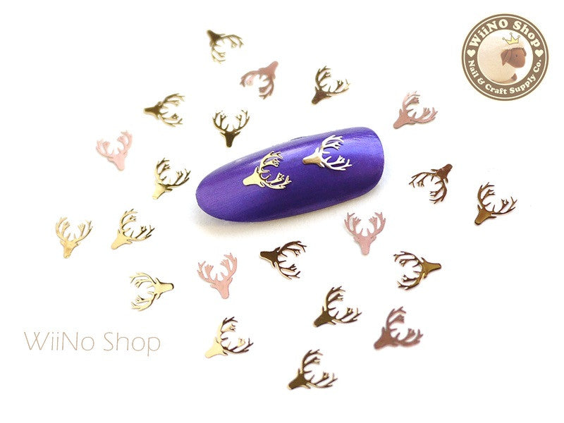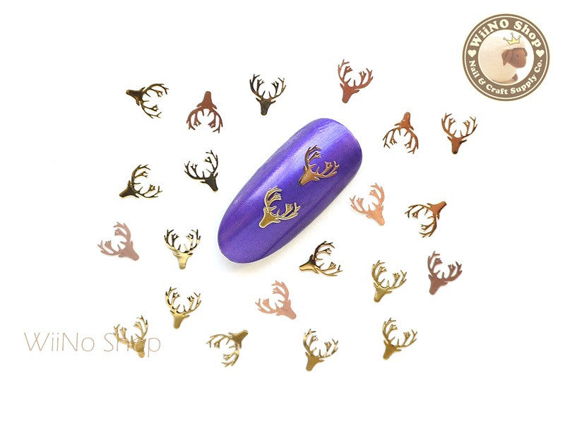 Gold Deer Head Ultra Thin Nail Art Metal Decoration - 25 pcs