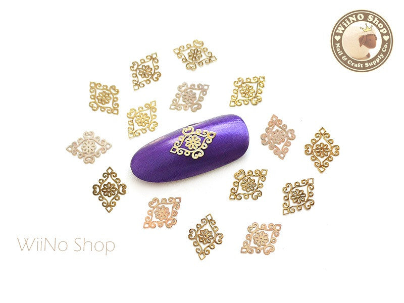 Gold Diamond Shaped Lace Pattern Ultra Thin Nail Art Metal Decoration - 25 pcs
