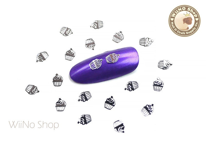 Silver Cupcake Ultra Thin Nail Art Metal Decoration - 25 pcs