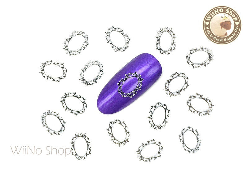 Silver Victorian Oval Frame Ultra Thin Nail Art Metal Decoration - 25 pcs