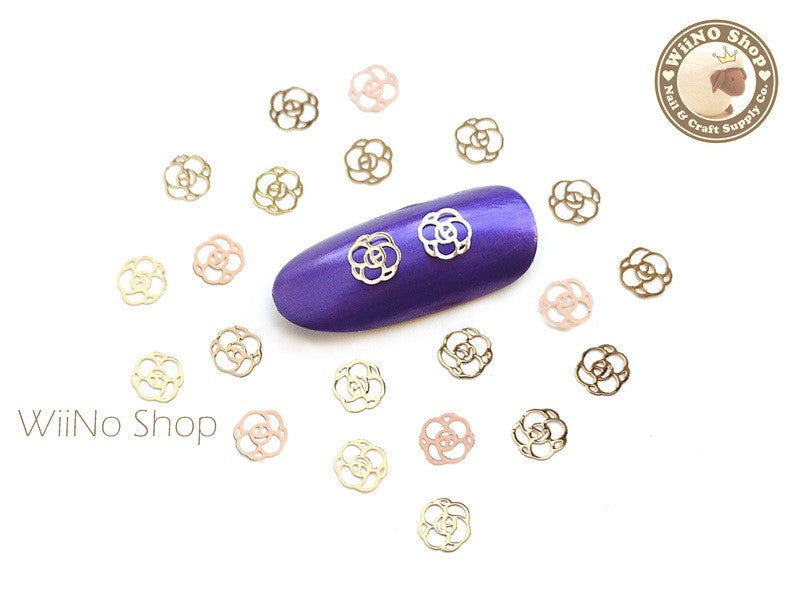 Gold Camellia Ultra Thin Nail Art Metal Decoration - 25 pcs