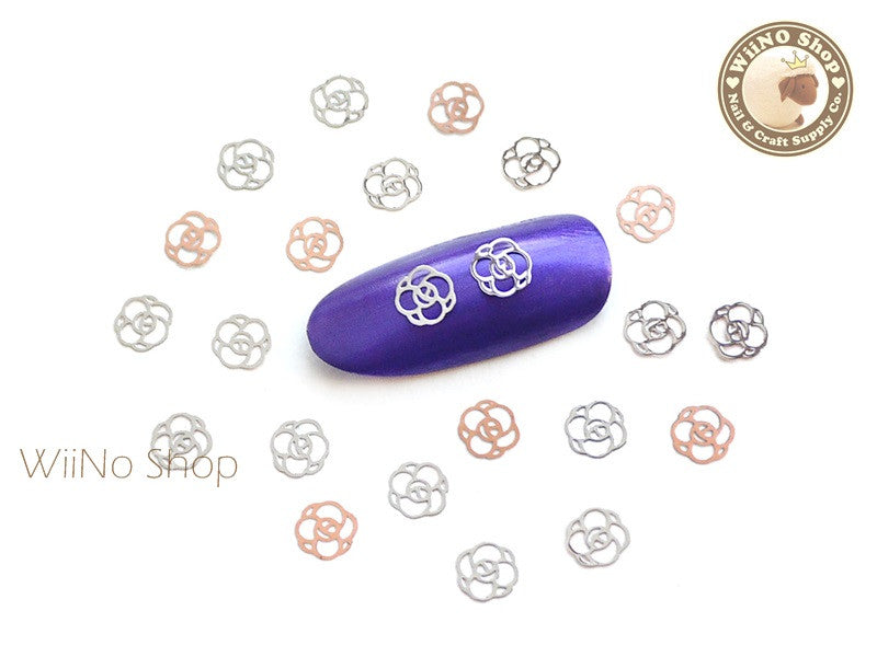 Silver Camellia Ultra Thin Nail Art Metal Decoration - 25 pcs