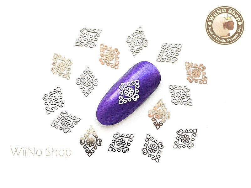 Silver Diamond Shaped Lace Pattern Ultra Thin Nail Art Metal Decoration - 25 pcs