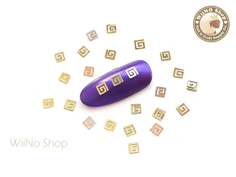 Gold Greek Key Square Ultra Thin Nail Art Metal Decoration - 25 pcs