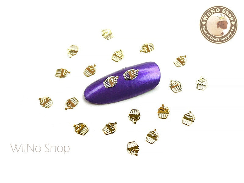 Gold Cupcake Ultra Thin Nail Art Metal Decoration - 25 pcs