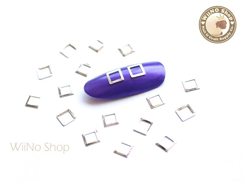 5mm Silver Square Hollow Frame Nail Art Decoration - 20 pcs