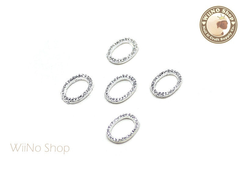 6 x 8mm Silver Oval Frame Nail Art Decoration - 5 pcs