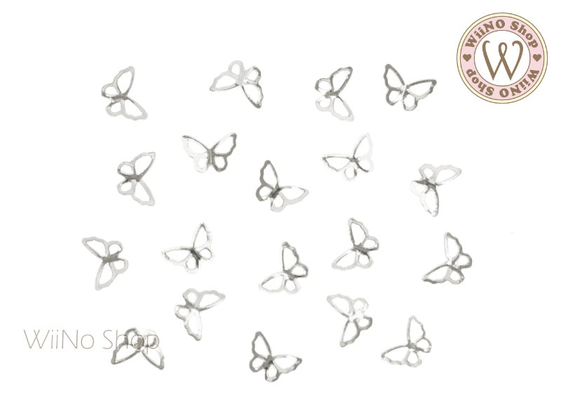 Silver 3D Hollow Butterfly Nail Metal Decoration - 5 pcs