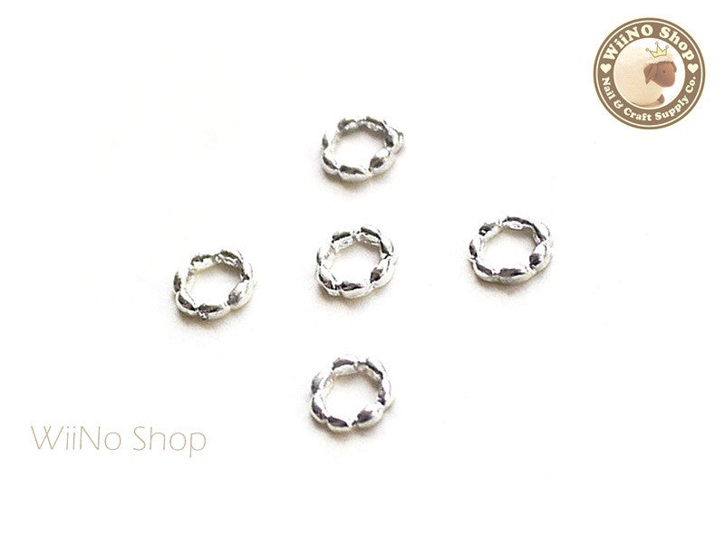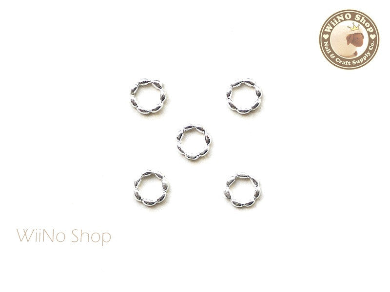 Silver Twist Round Circle Frame Nail Art Decoration - 5 pcs