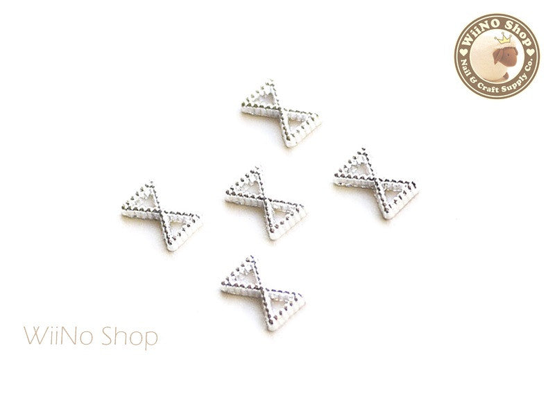 Silver Bow Frame Nail Art Decoration - 5 pcs