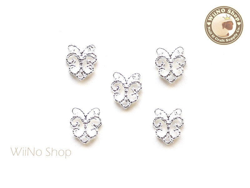 Silver Butterfly Pattern Frame Nail Art Decoration - 5 pcs