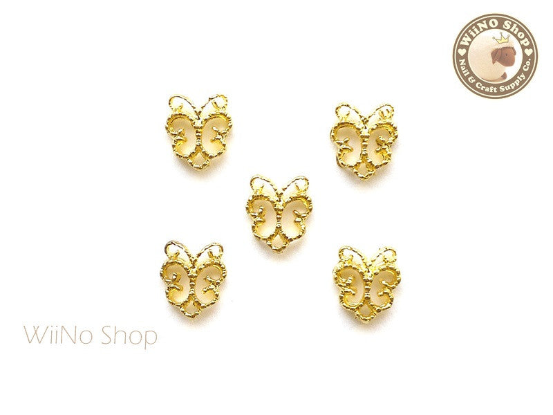 Gold Butterfly Pattern Frame Nail Art Decoration - 5 pcs