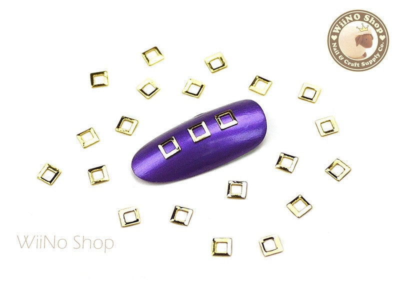 3mm Gold Square Hollow Frame Nail Art Decoration - 20 pcs