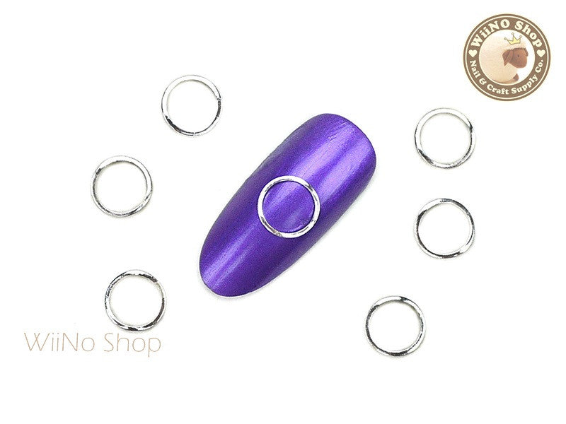 4mm Silver Round Circle Frame Nail Art Decoration - 5 pcs