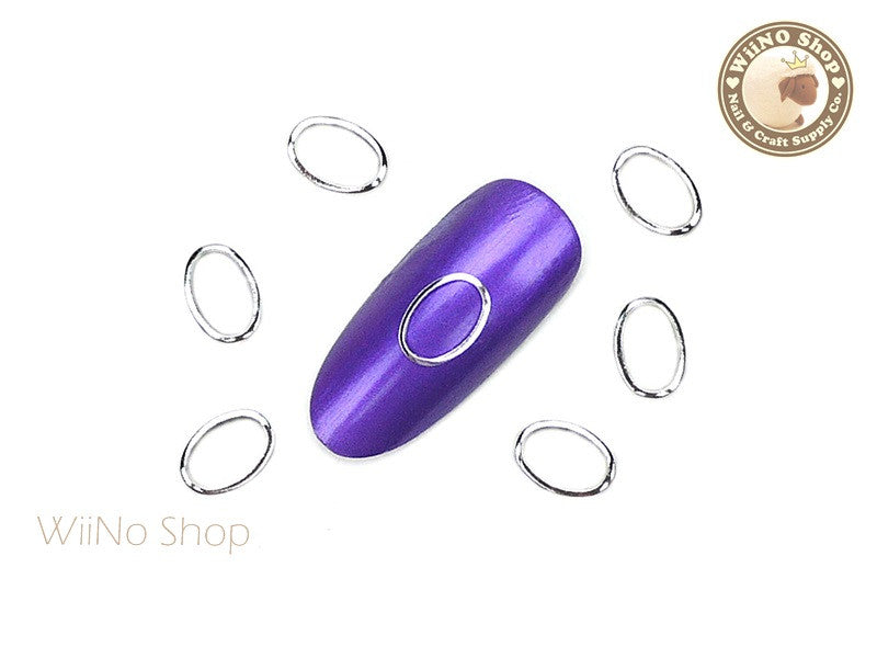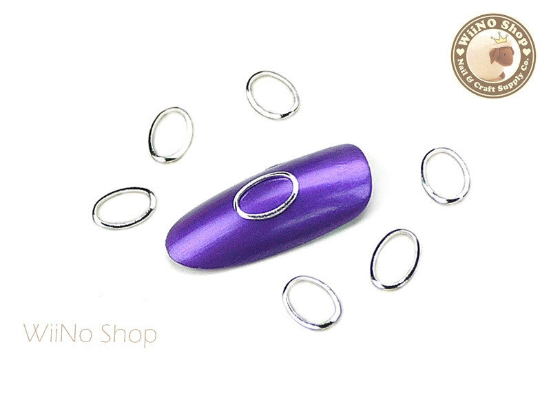 6 x 8mm Silver Oval Frame Nail Art Decoration - 5 pcs