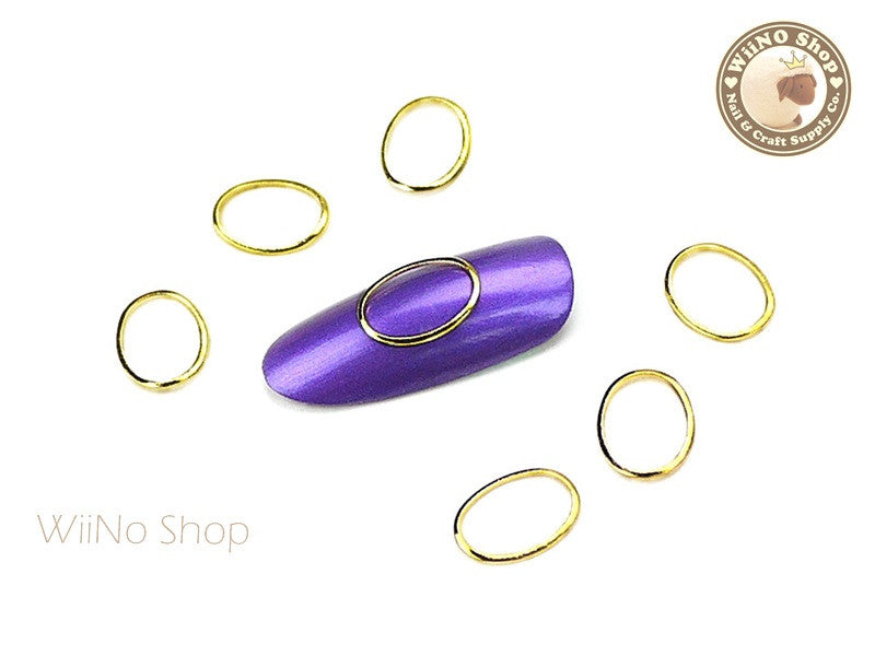 6 x 8mm Gold Oval Frame Nail Art Decoration - 5 pcs