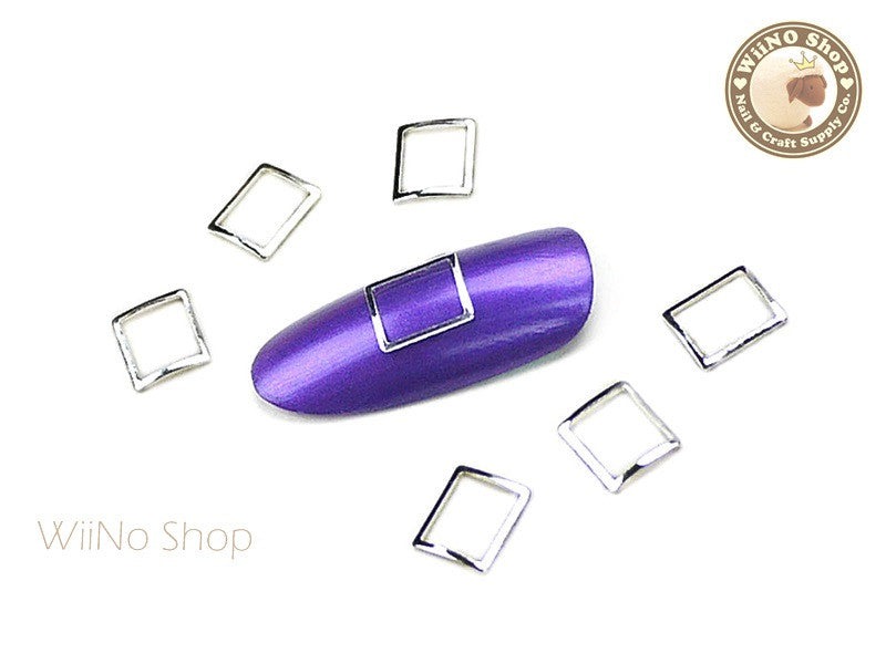 6mm Silver Square Hollow Frame Nail Art Decoration - 20 pcs