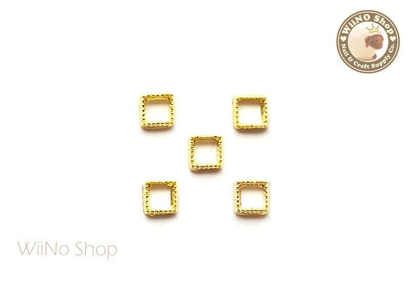5mm Gold Square Hollow Frame Nail Art Decoration - 20 pcs