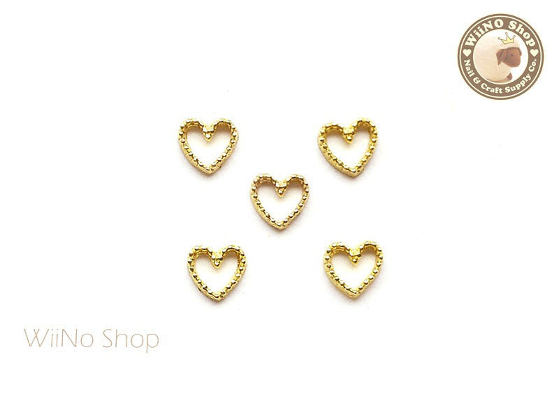 Gold Heart Frame Nail Art Decoration - 5 pcs
