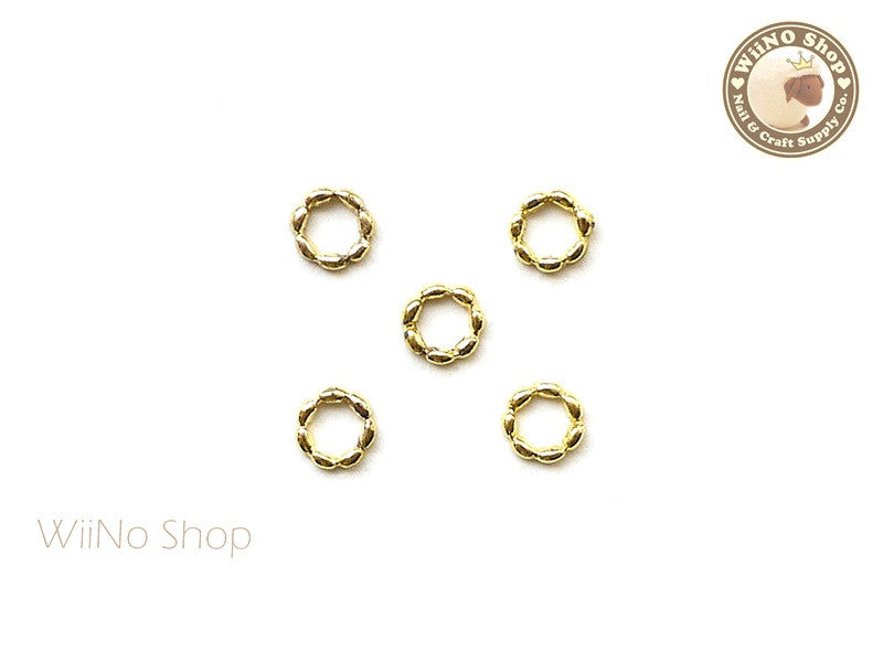Gold Twist Round Circle Frame Nail Art Decoration - 5 pcs
