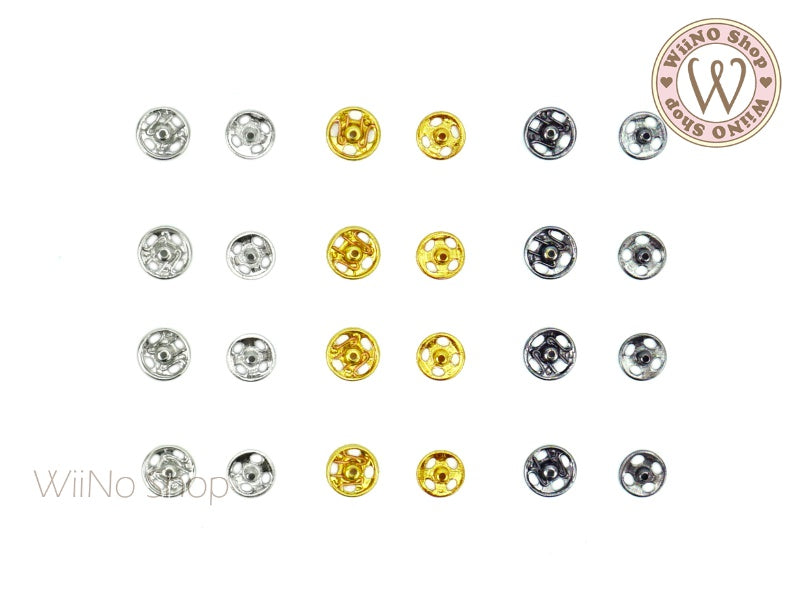 -Simply stick the snap charm base on the nail and the other side on the charms. Base or top can be either on the nails or on the charms.