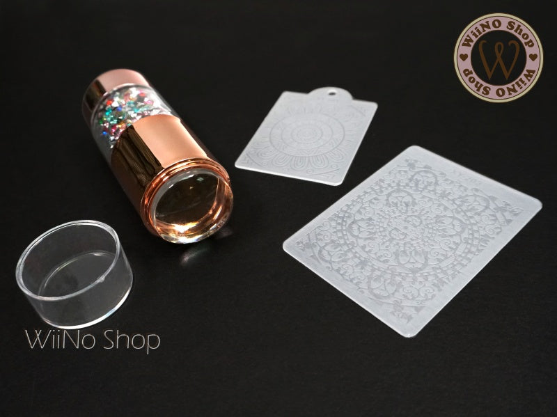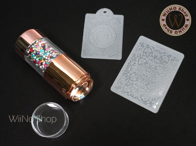 Rose Gold Rhinestone Nail Art Stamper & Scraper - 1 set