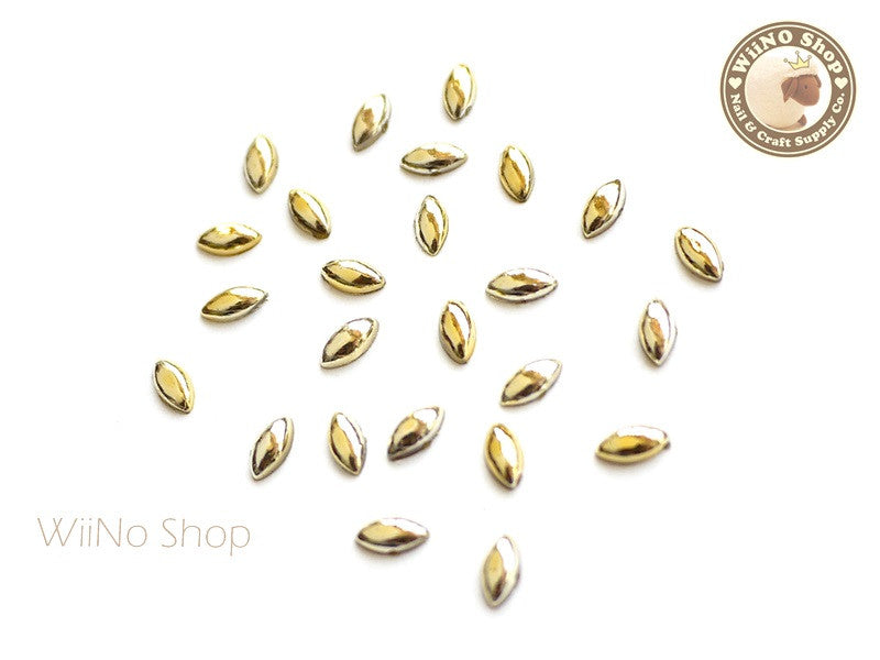 3 x 6mm Half Marquise Gold Chrome Flat Back Acrylic Cabochon Nail Art - 15 pcs