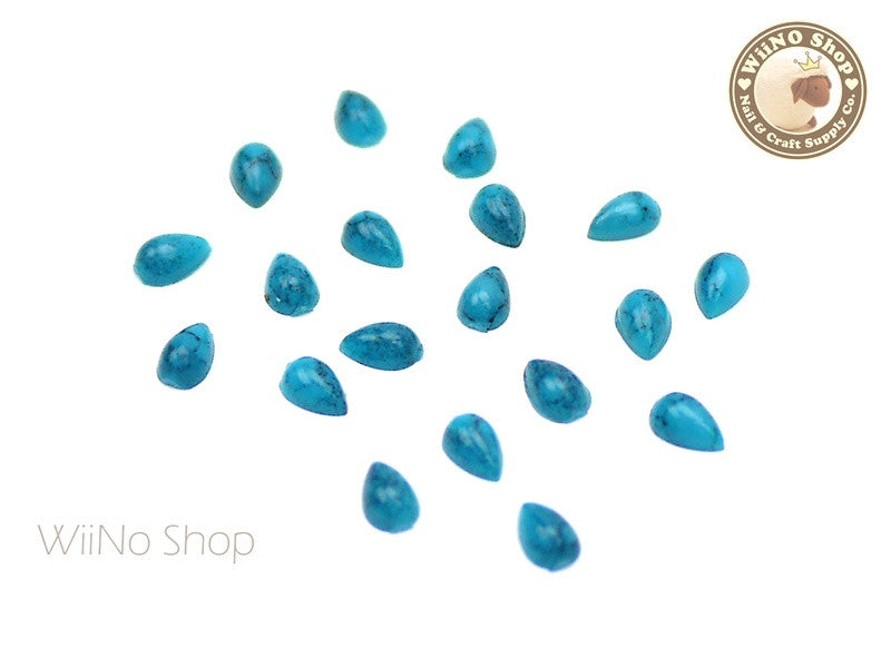 6 x 4mm Blue Turquoise Drop Flat Back Acrylic Cabochon - 15 pcs