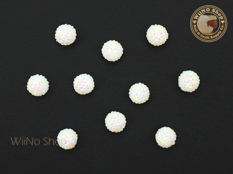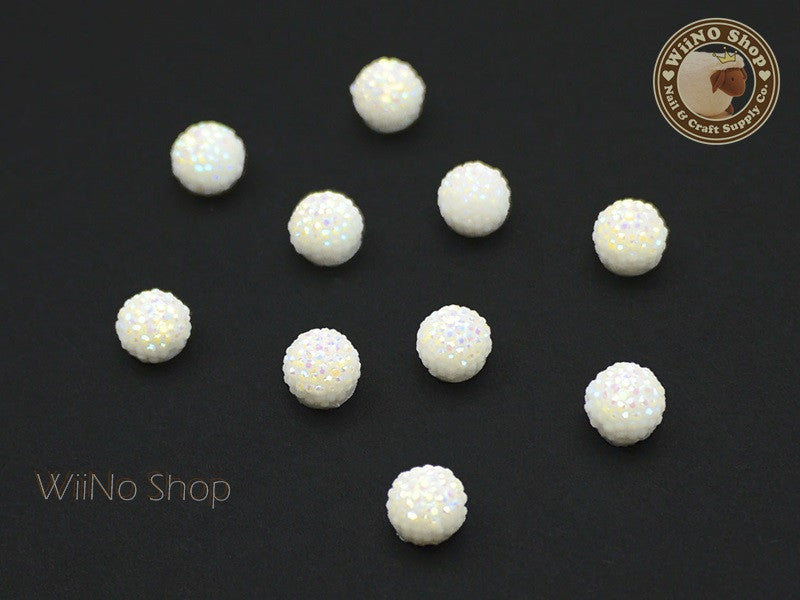 6mm AB White 3D Acrylic Rhinestone Ball Cabochon - 5 pcs