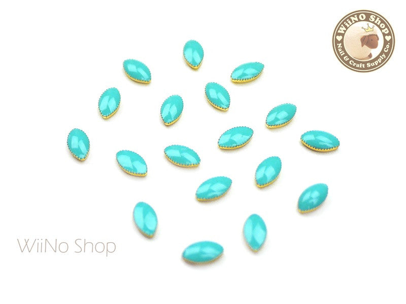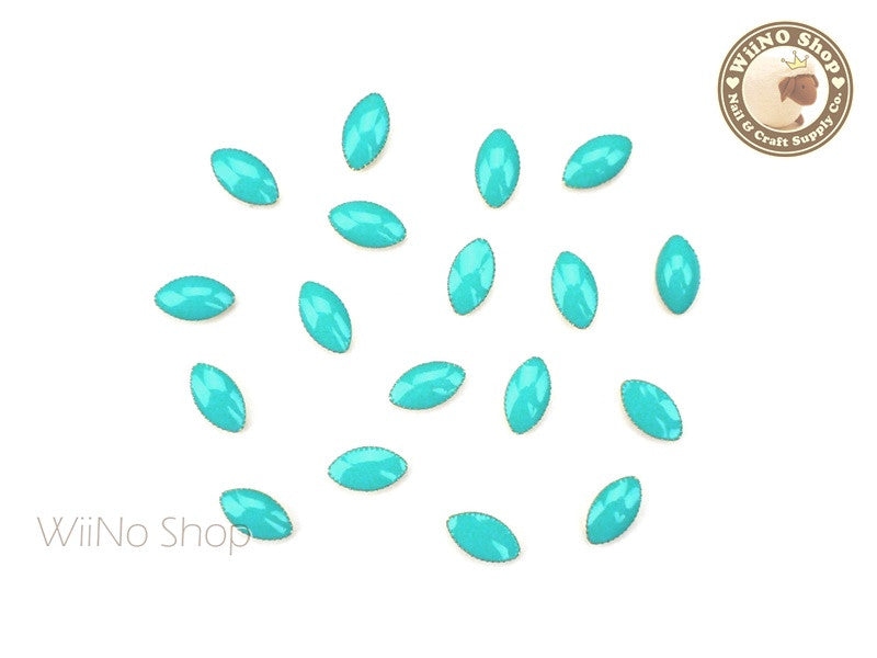 7 x 4mm Turquoise Marquise Enamel Cabochon with Setting - 5 pcs