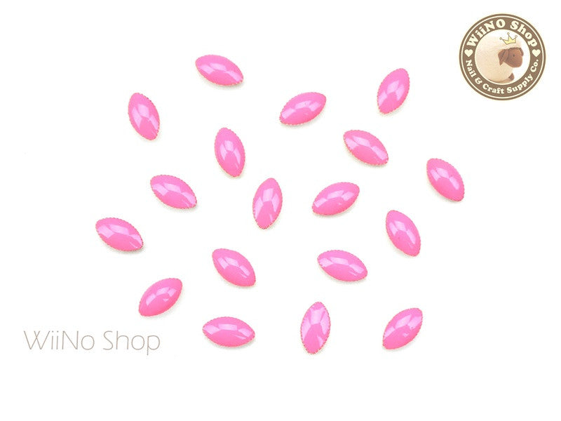 7 x 4mm Neon Pink Marquise Enamel Cabochon with Setting - 5 pcs