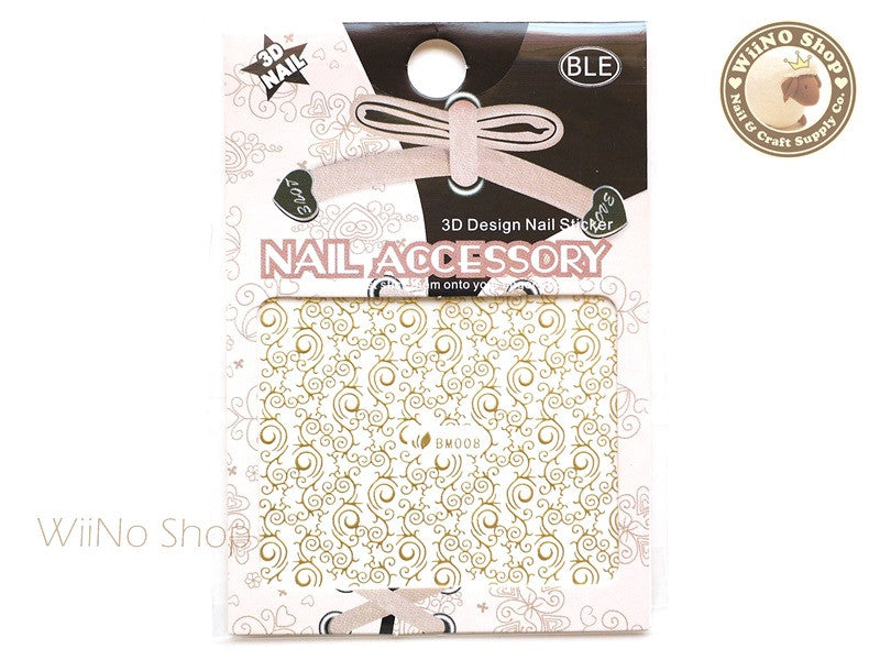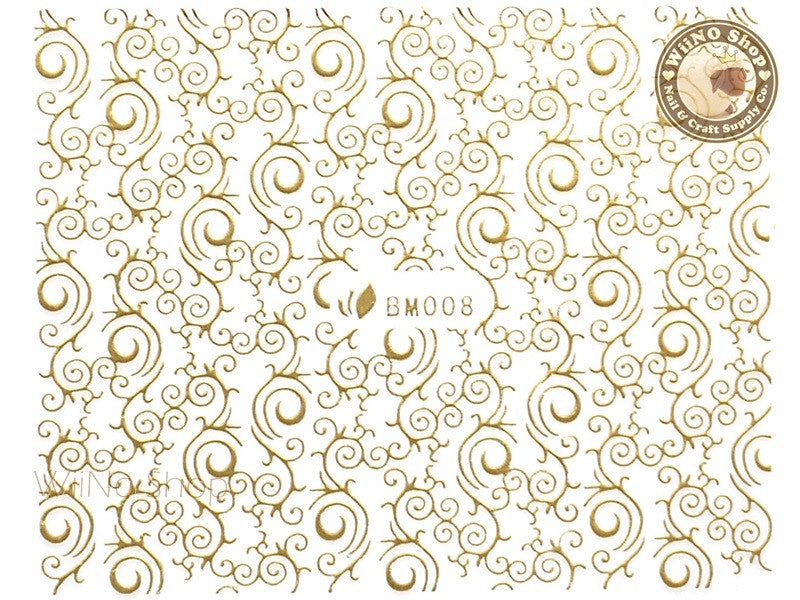 Gold Swirl Pattern Adhesive Nail Sticker Nail Art - 1 pc (BM008G)