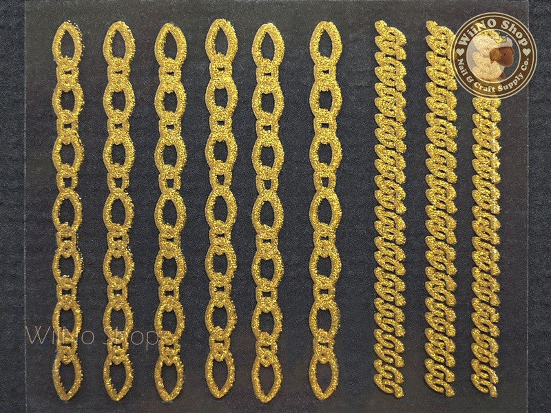 Gold Glitter Chain Adhesive Nail Sticker Nail Art - 1 pc (TFM2)
