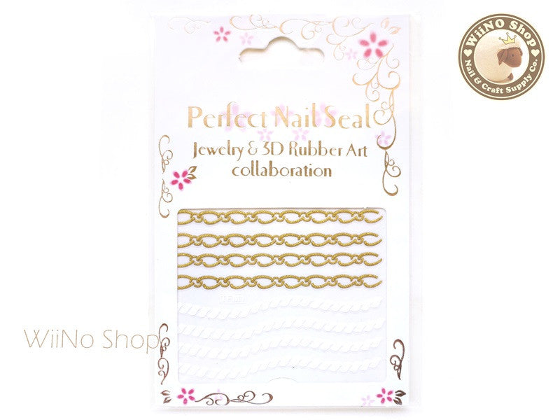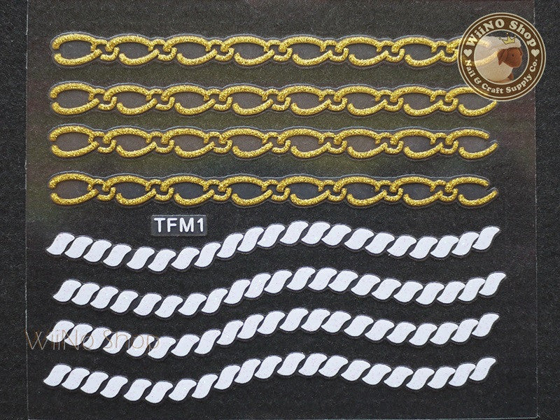 Gold White Glitter Rope Chain Adhesive Nail Sticker Nail Art - 1 pc (TFM1)