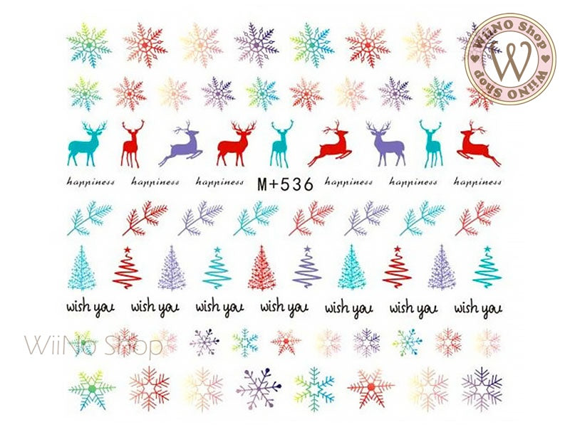 M+536 Colorful Deer Snowflake Water Slide Nail Art Decals - 1pc
