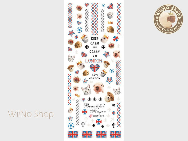 Keep Calm and Carry On Cat Dog London II Water Slide Nail Art Decals - 1pc (HOT-125)