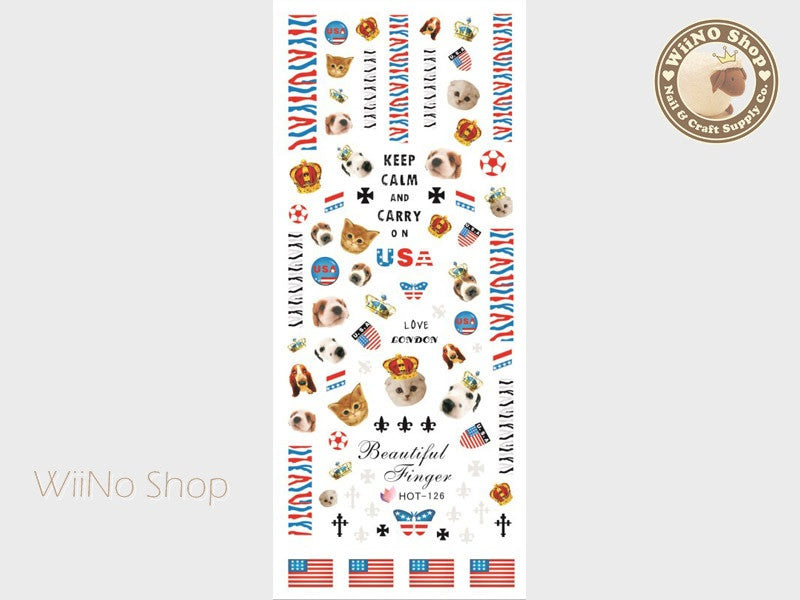Keep Calm and Carry On Cat Dog USA Water Slide Nail Art Decals - 1pc (HOT-126)