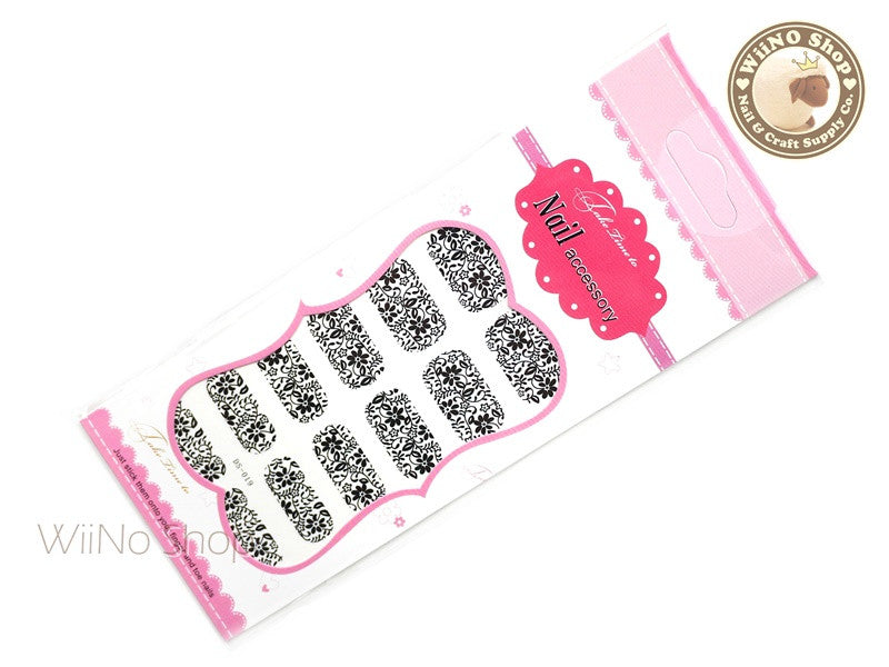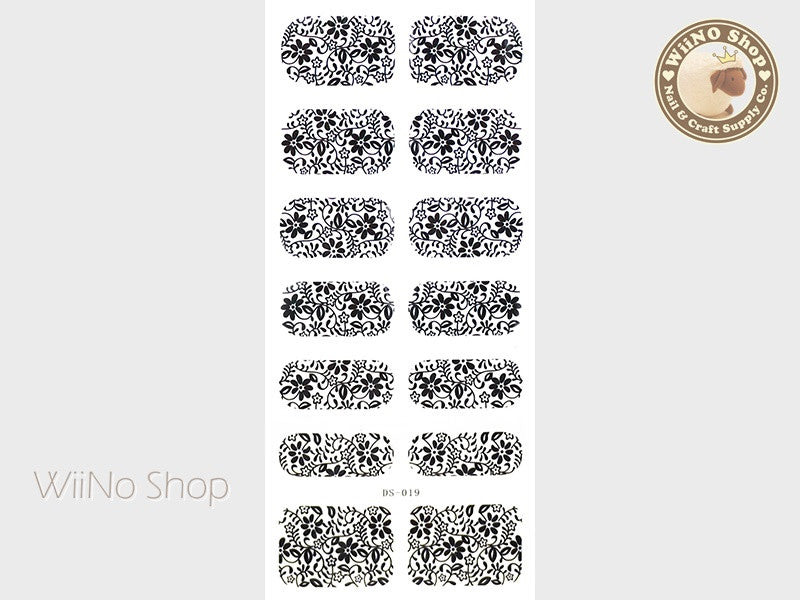 Black Floral Pattern Water Slide Nail Art Decals - 1 pc (DS-019)