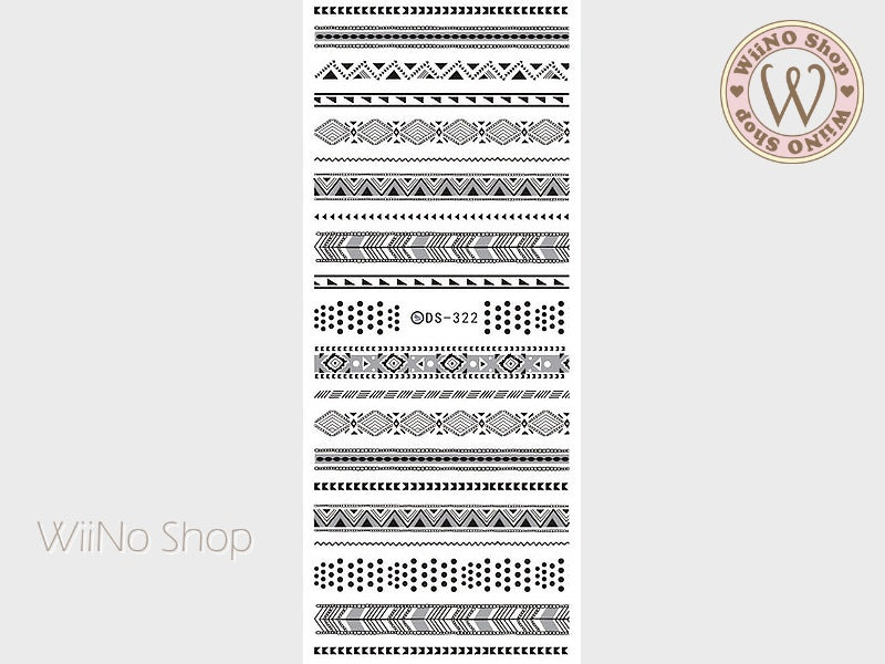 Black Tribal Pattern Water Slide Nail Art Decals - 1 pc (DS-322)