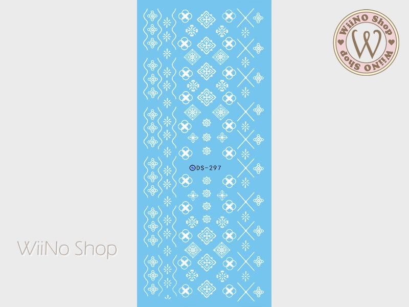 White Geometric Floral Pattern Water Slide Nail Art Decals - 1 pc (DS-297)
